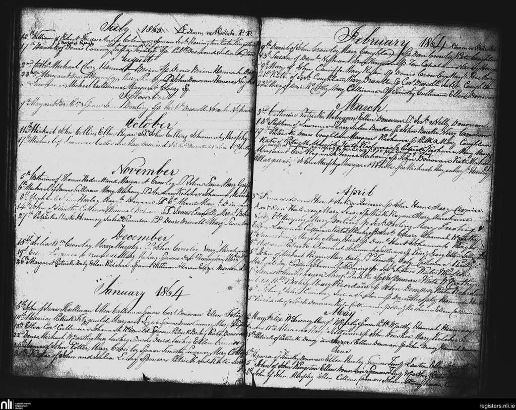 Timoleague; County of Cork; Diocese of Cork and Ross. Baptisms, July 1863 to June 1864