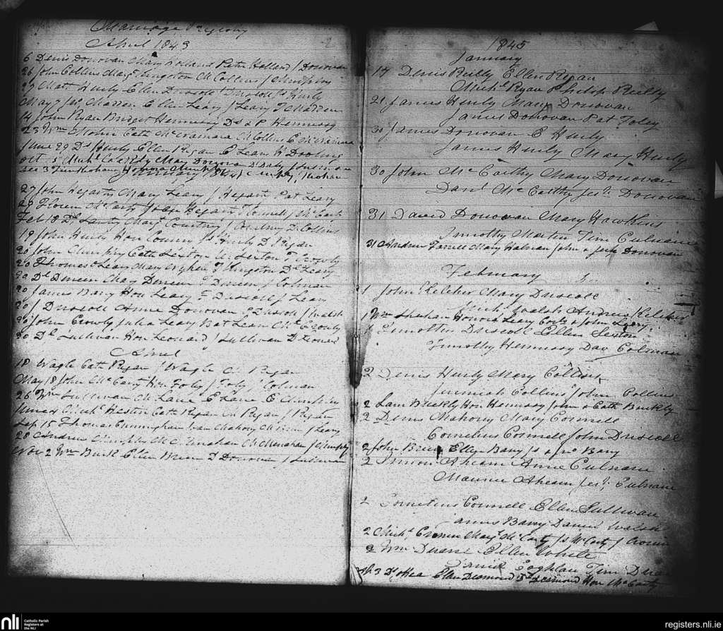 Timoleague; County of Cork; Diocese of Cork and Ross. Marriages, Apr. 1843 to Feb. 1845
