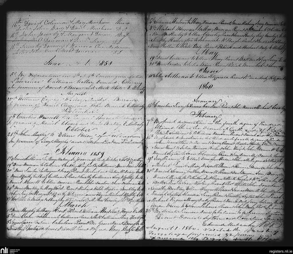 Timoleague; County of Cork; Diocese of Cork and Ross. Marriages, June 1858 to Feb. 1860