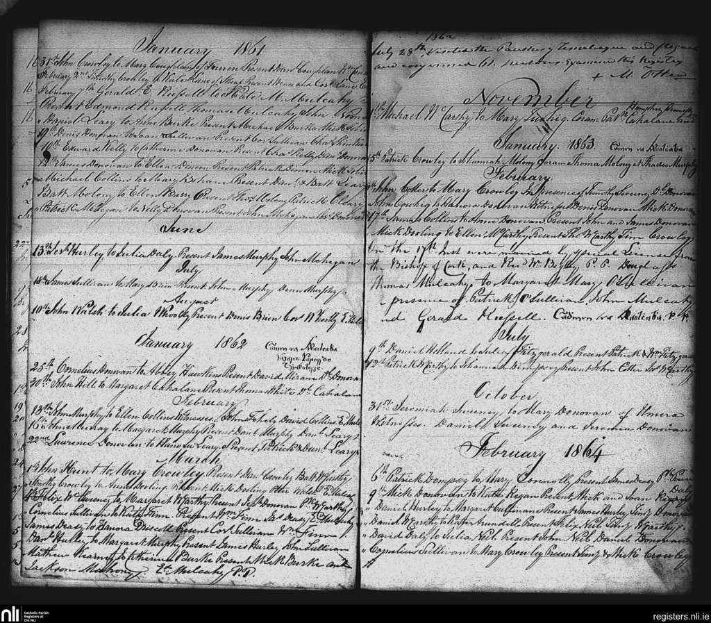 Timoleague; County of Cork; Diocese of Cork and Ross. Marriages, Jan. 1861 to Feb. 1864