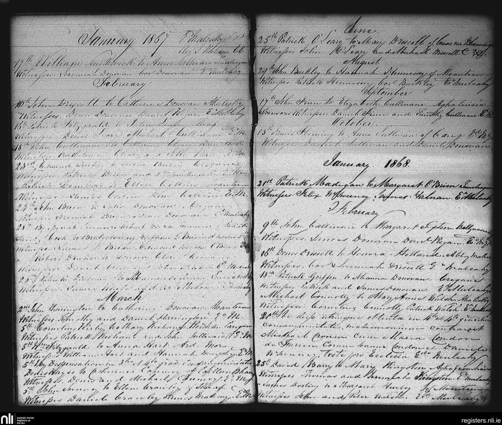 Timoleague; County of Cork; Diocese of Cork and Ross. Marriages, Jan. 1867 to Feb. 1868