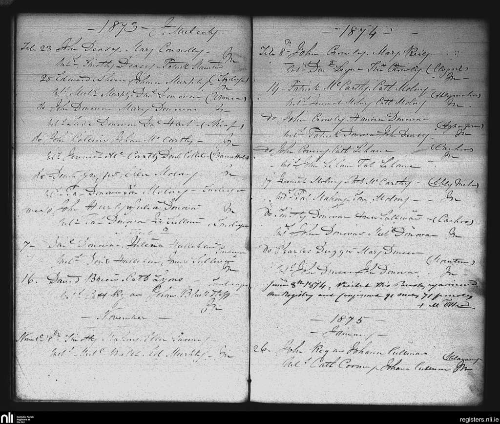 Timoleague; County of Cork; Diocese of Cork and Ross. Marriages, Feb. 1873 to Jan. 1875