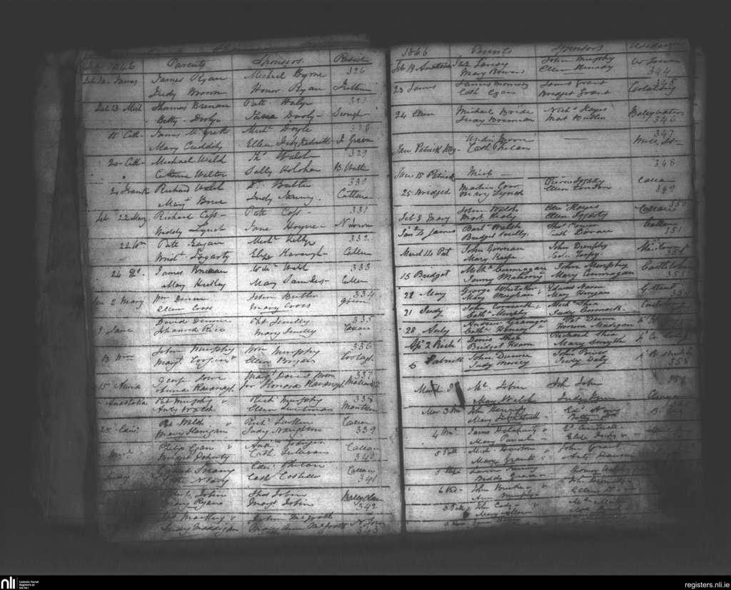 Callan; County of Kilkenny; Diocese of Ossory. Baptisms, Feb. 1846 to Mar. 1846