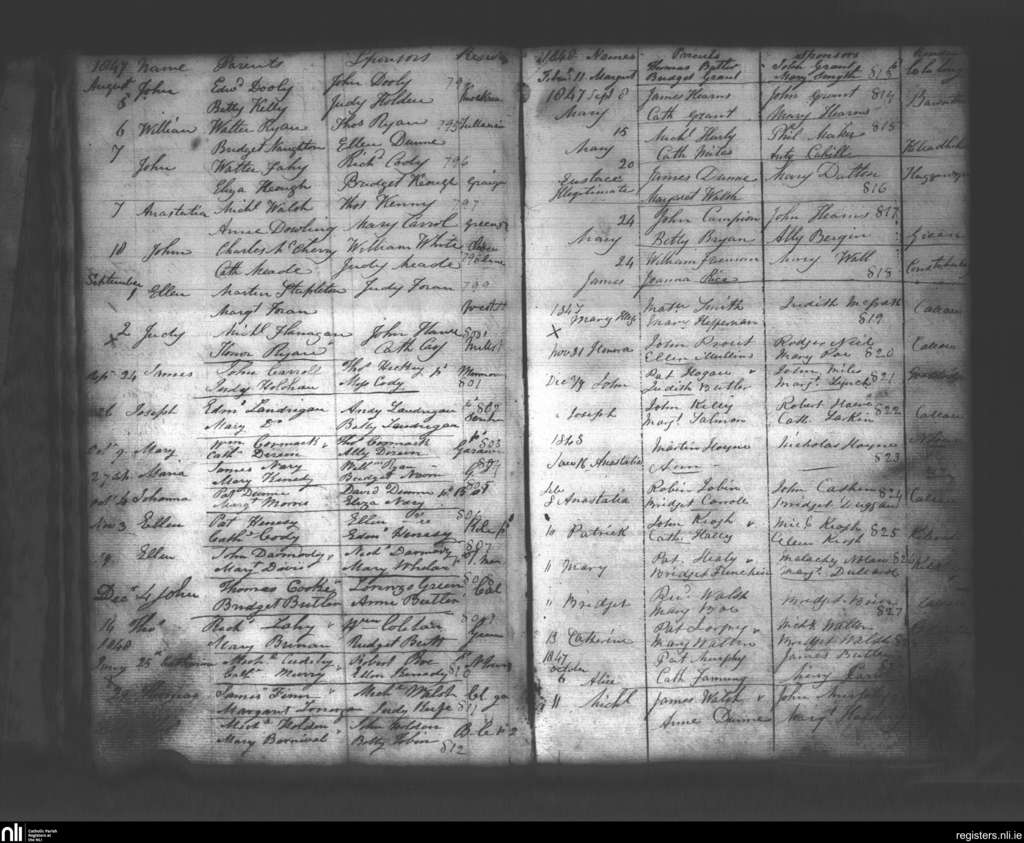 Callan; County of Kilkenny; Diocese of Ossory. Baptisms, Aug. 1847 to Feb. 1848