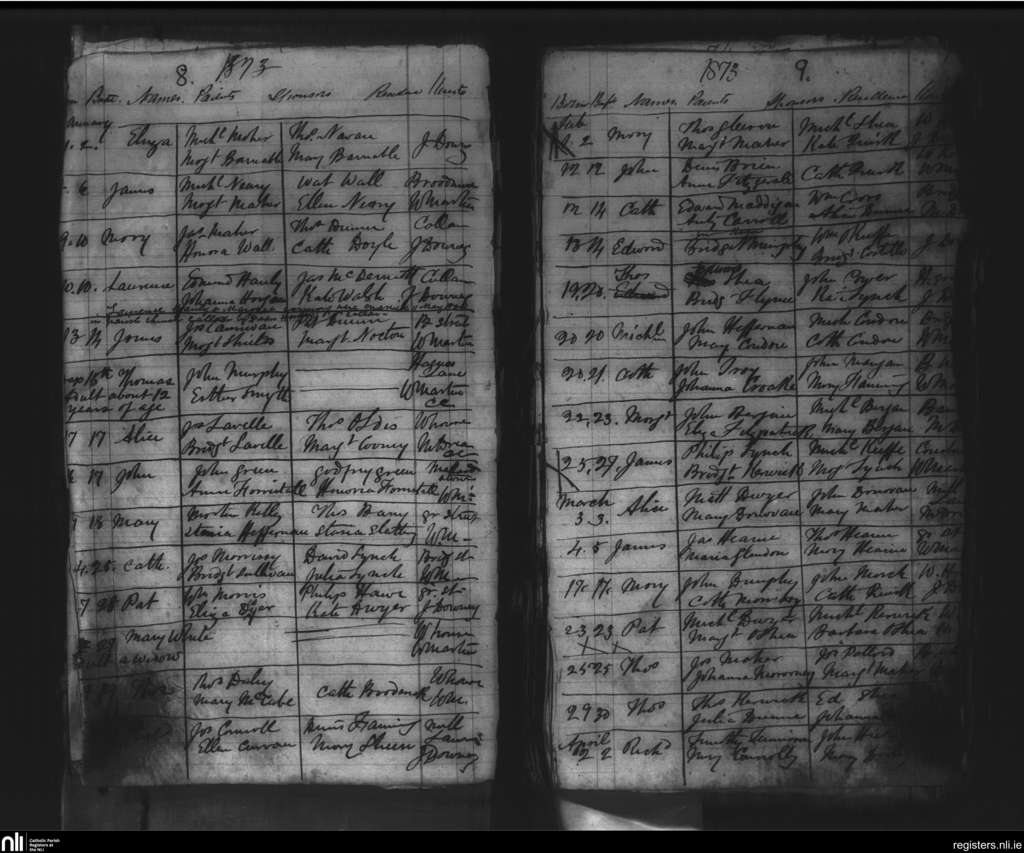 Callan; County of Kilkenny; Diocese of Ossory. Baptisms, Jan. 1873 to Apr. 1873
