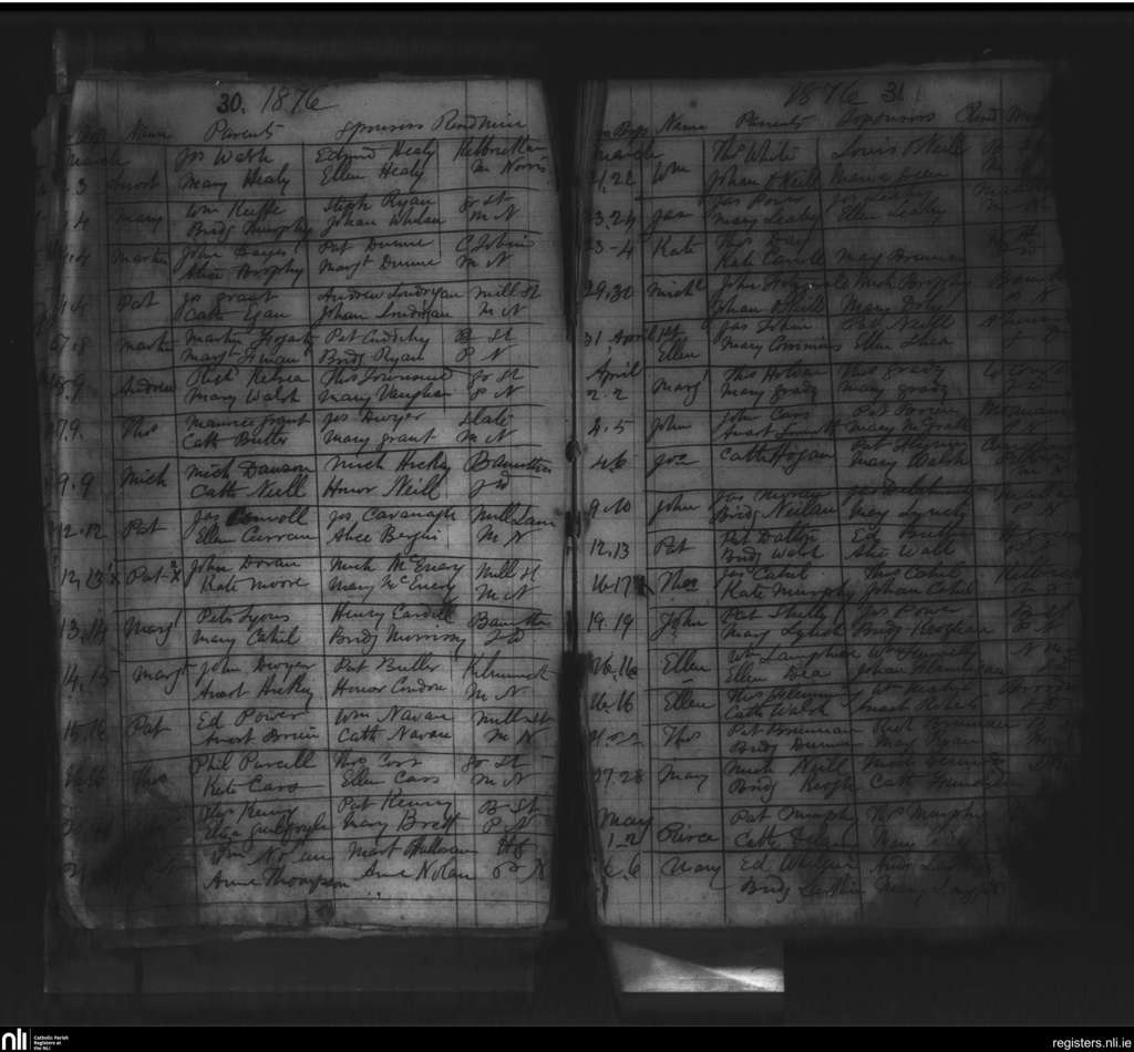 Callan; County of Kilkenny; Diocese of Ossory. Baptisms, Mar. 1876 to May 1876