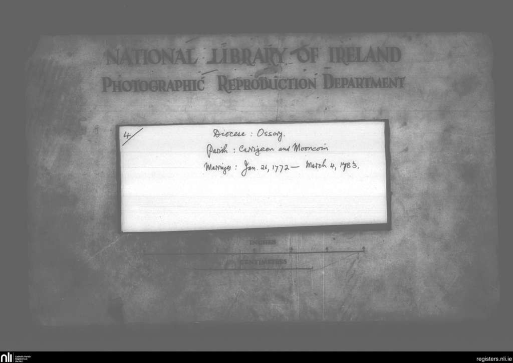 Carrigeen and Mooncoin; County of Kilkenny; Diocese of Ossory. Marriages