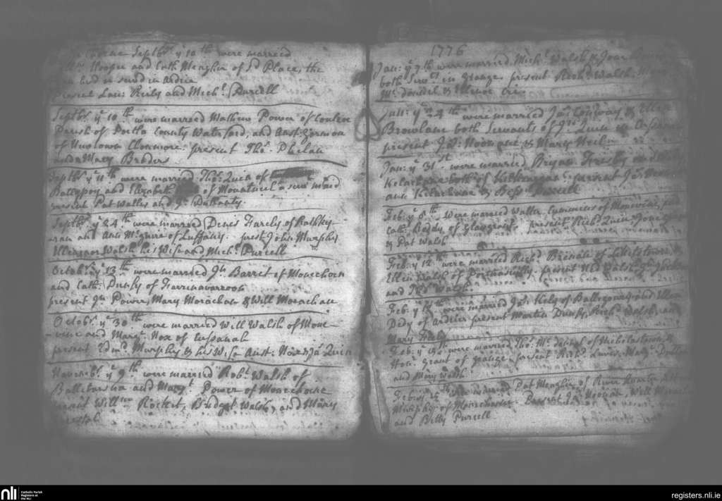 Carrigeen and Mooncoin; County of Kilkenny; Diocese of Ossory. Marriages, Sep. 1775 to Feb. 1776