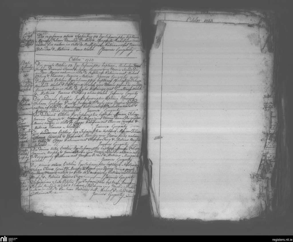 Carrigeen and Mooncoin; County of Kilkenny; Diocese of Ossory. Baptisms, Sep. 1783 to Oct. 1783