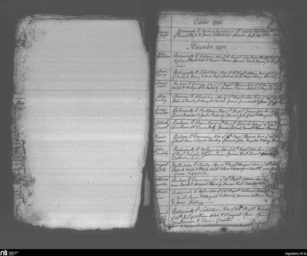 Carrigeen and Mooncoin; County of Kilkenny; Diocese of Ossory. Baptisms, Oct. 1783 to Nov. 1783