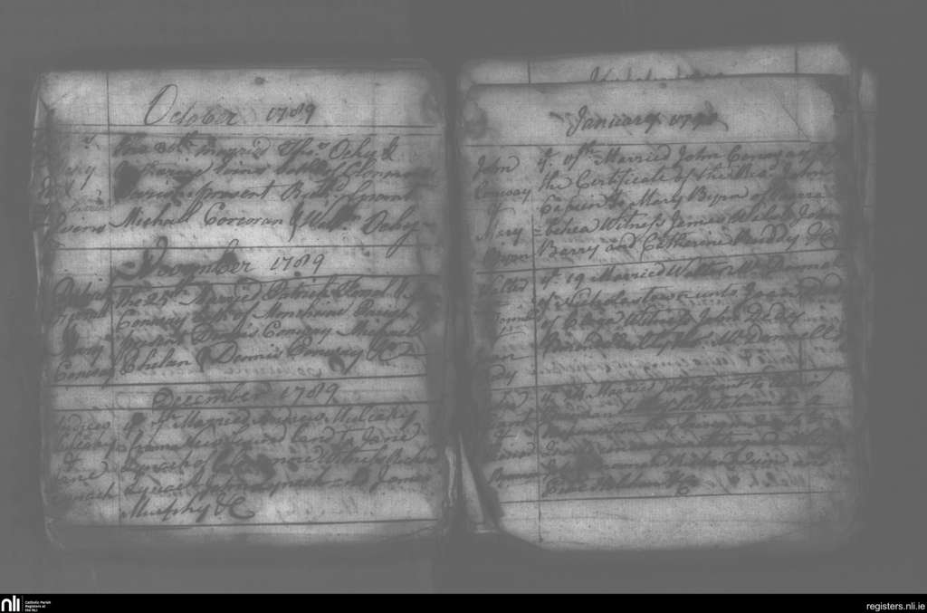 Carrigeen and Mooncoin; County of Kilkenny; Diocese of Ossory. Marriages, Oct. 1789 to Jan. 1790