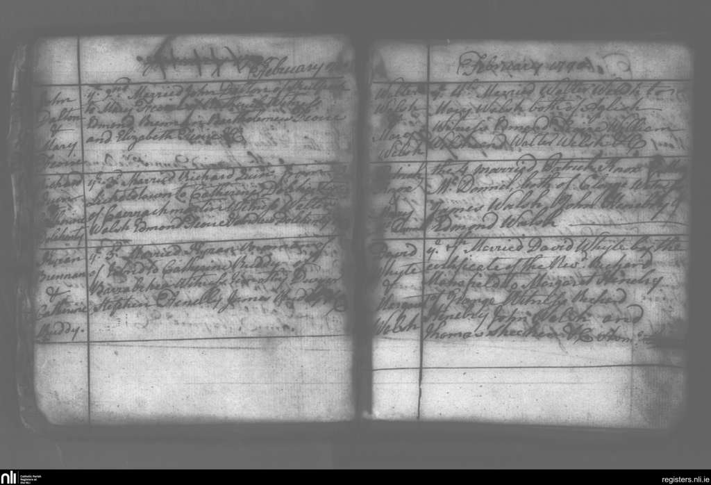Carrigeen and Mooncoin; County of Kilkenny; Diocese of Ossory. Marriages, Feb. 1790