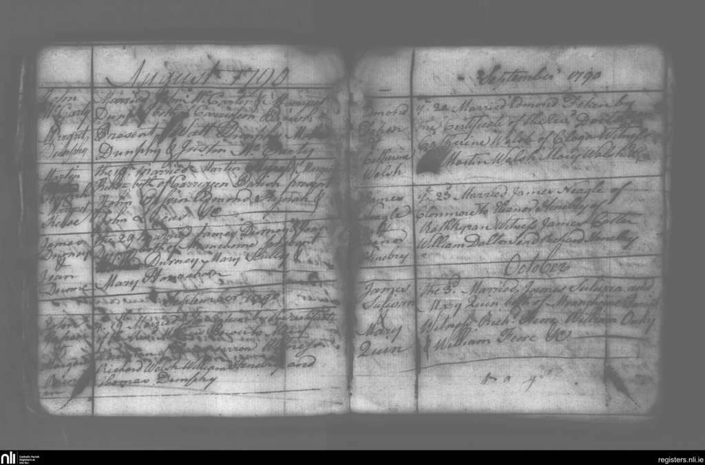 Carrigeen and Mooncoin; County of Kilkenny; Diocese of Ossory. Marriages, Aug. 1790 to Oct. 1790