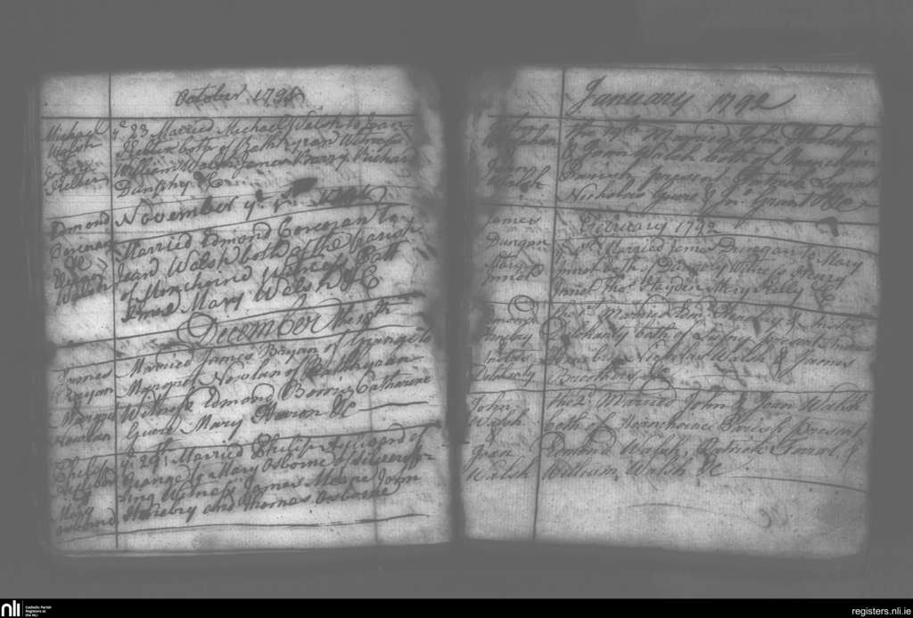 Carrigeen and Mooncoin; County of Kilkenny; Diocese of Ossory. Marriages, Oct. 1791 to Feb. 1792