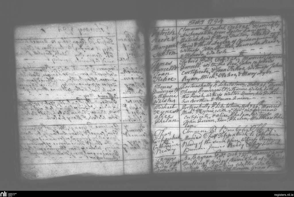 Carrigeen and Mooncoin; County of Kilkenny; Diocese of Ossory. Marriages, Feb. 1794