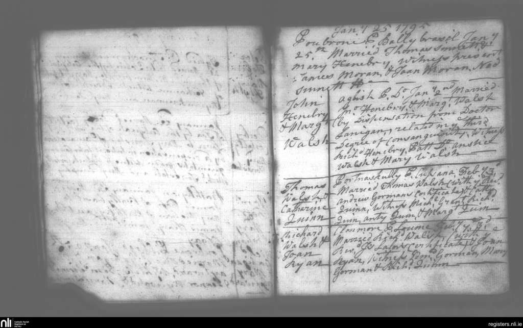 Carrigeen and Mooncoin; County of Kilkenny; Diocese of Ossory. Marriages, Jan. 1795 to Feb. 1795