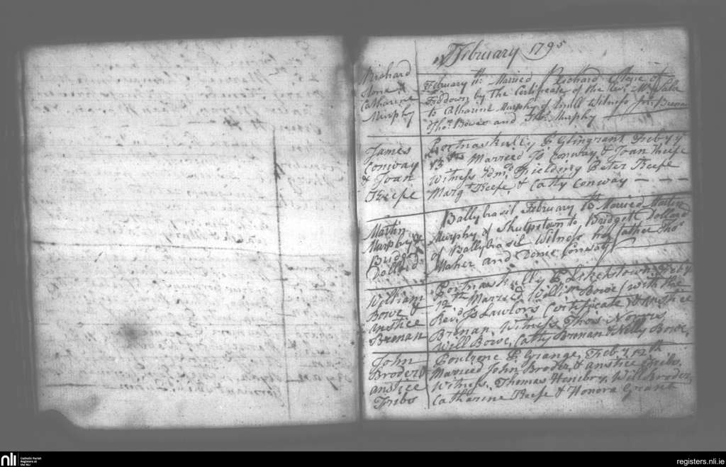 Carrigeen and Mooncoin; County of Kilkenny; Diocese of Ossory. Marriages, Feb. 1795