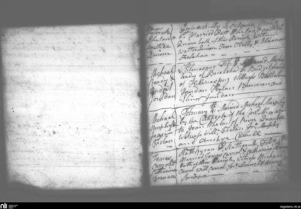 Carrigeen and Mooncoin; County of Kilkenny; Diocese of Ossory. Marriages, Feb. 1796