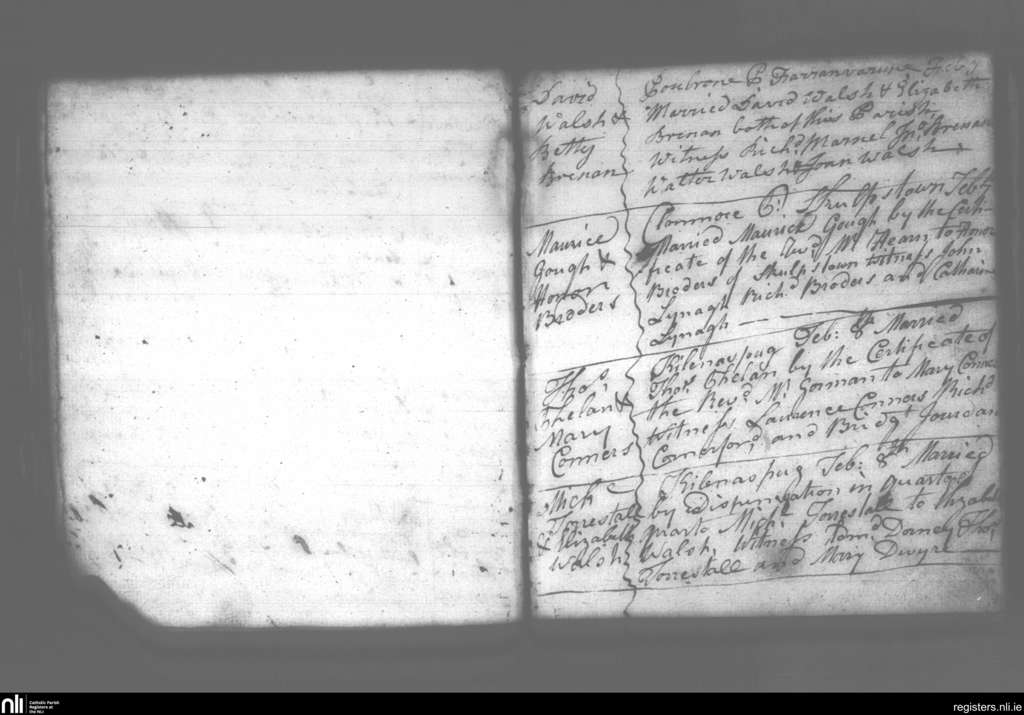 Carrigeen and Mooncoin; County of Kilkenny; Diocese of Ossory. Marriages, Feb. 1796