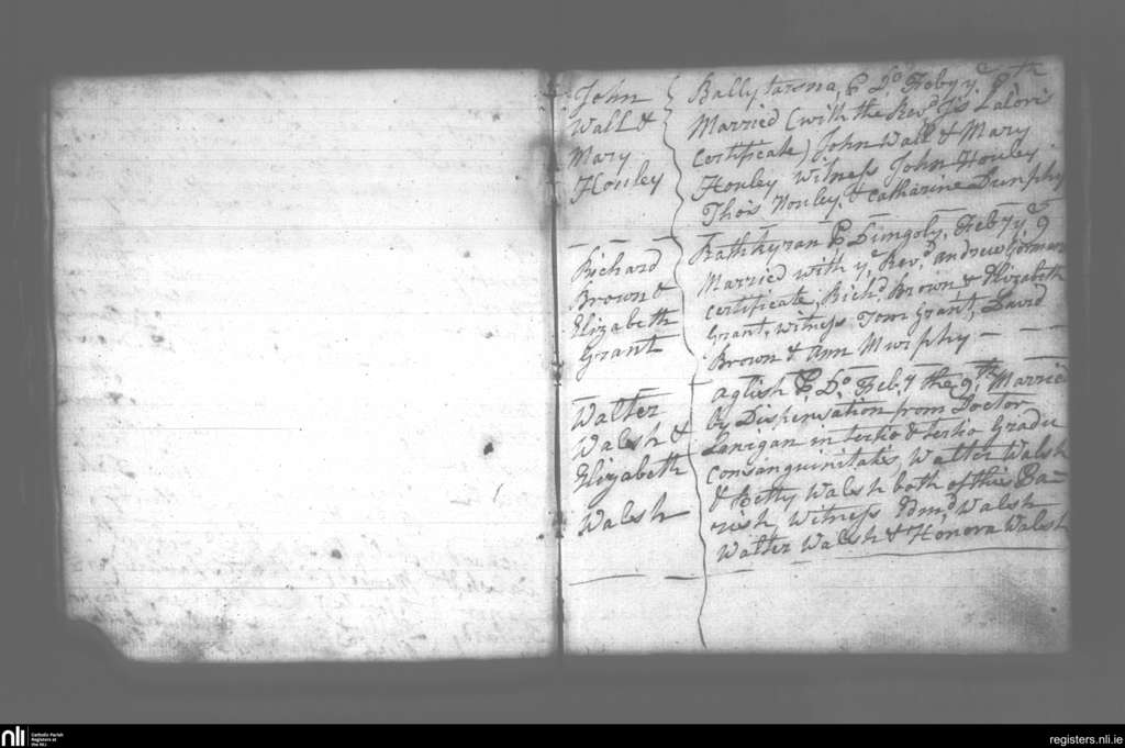 Carrigeen and Mooncoin; County of Kilkenny; Diocese of Ossory. Marriages, Feb. 1796