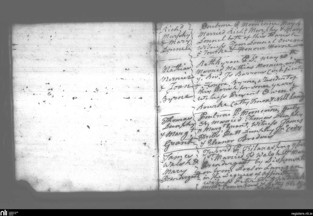 Carrigeen and Mooncoin; County of Kilkenny; Diocese of Ossory. Marriages, May 1796 to Sep. 1796
