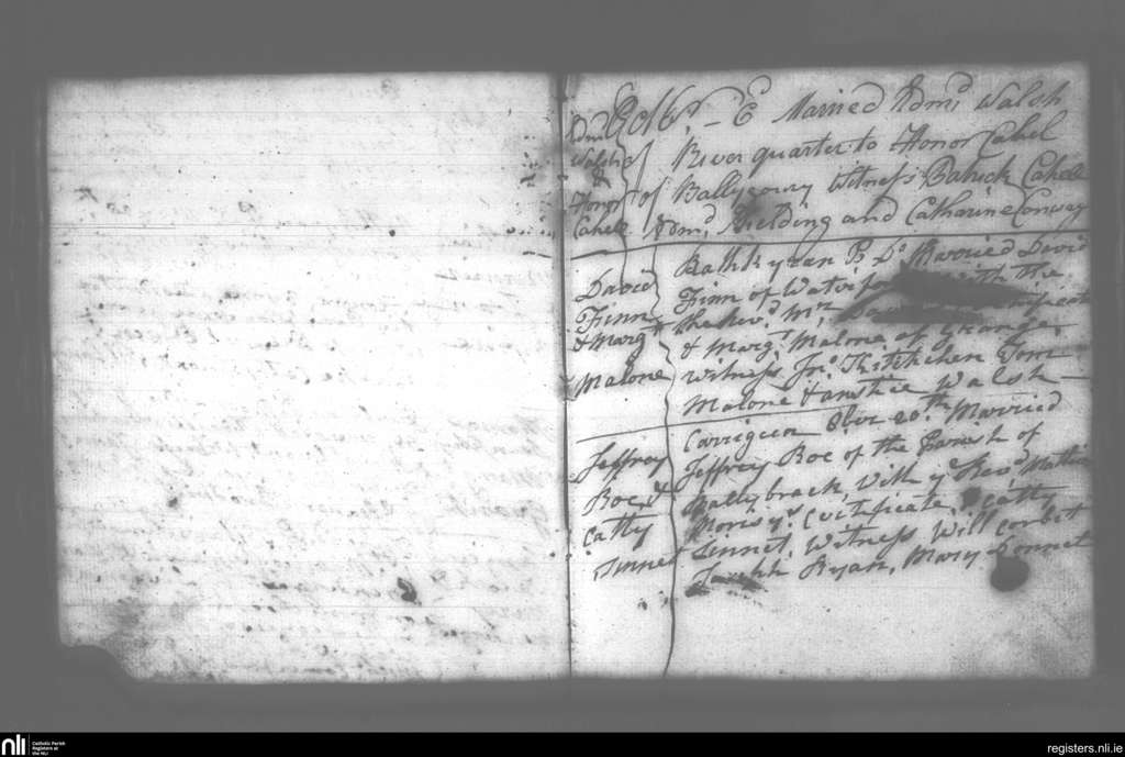 Carrigeen and Mooncoin; County of Kilkenny; Diocese of Ossory. Marriages, Oct. 1796