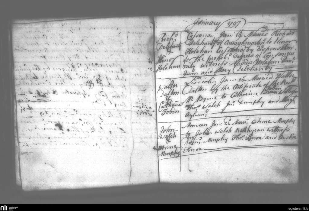 Carrigeen and Mooncoin; County of Kilkenny; Diocese of Ossory. Marriages, Jan. 1797