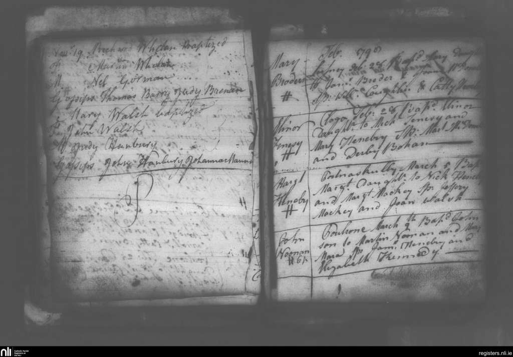 Carrigeen and Mooncoin; County of Kilkenny; Diocese of Ossory. Baptisms, Feb. 1798 to Mar. 1798