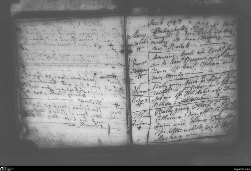 Carrigeen and Mooncoin; County of Kilkenny; Diocese of Ossory. Baptisms, Mar. 1798 to Apr. 1798