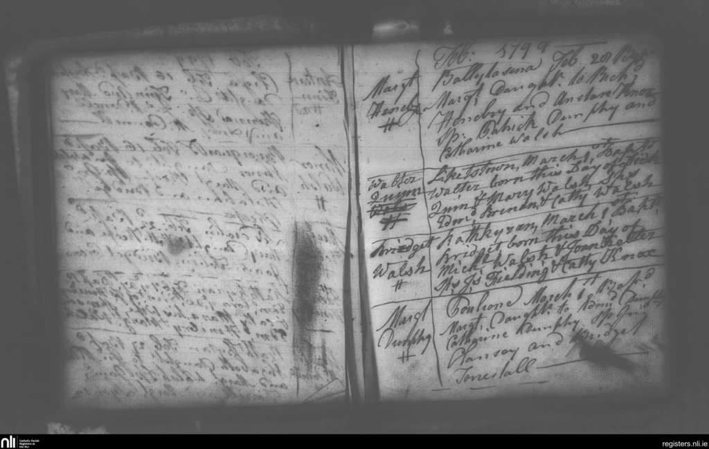 Carrigeen and Mooncoin; County of Kilkenny; Diocese of Ossory. Baptisms, Feb. 1799 to Mar. 1799