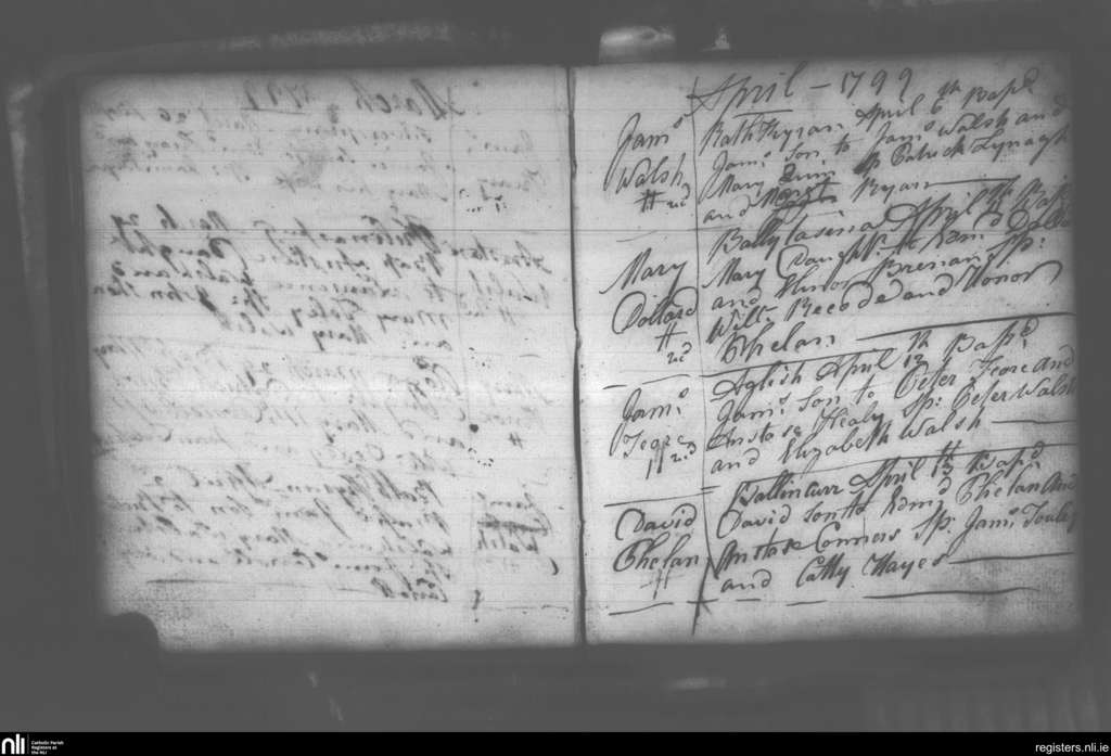 Carrigeen and Mooncoin; County of Kilkenny; Diocese of Ossory. Baptisms, Apr. 1799