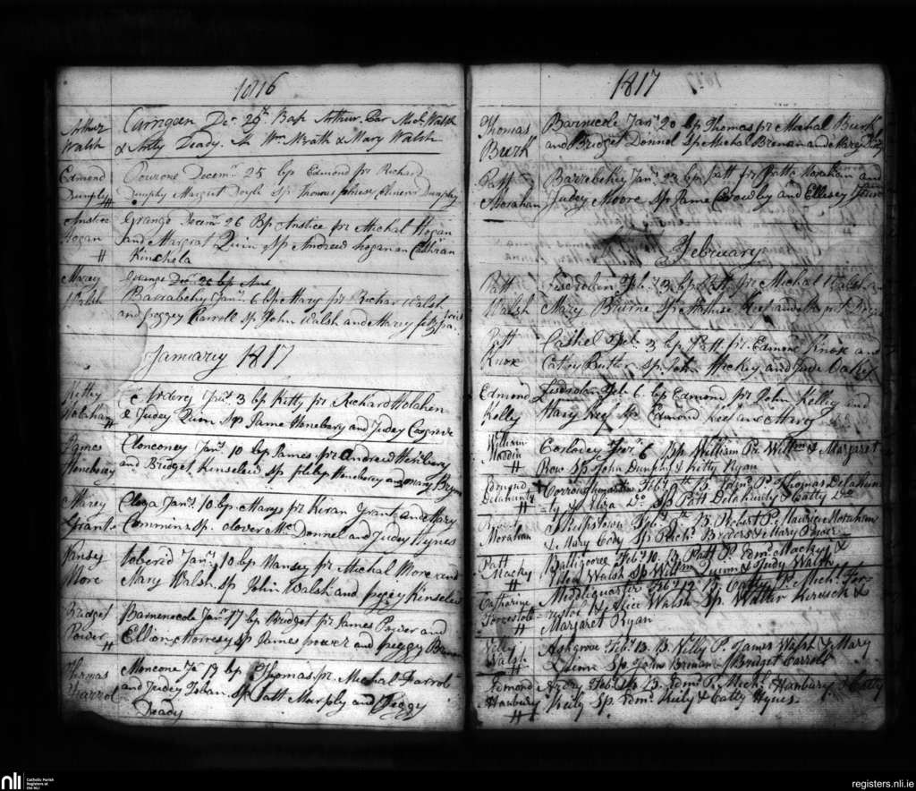 Carrigeen and Mooncoin; County of Kilkenny; Diocese of Ossory. Baptisms, Dec. 1816 to Feb. 1817