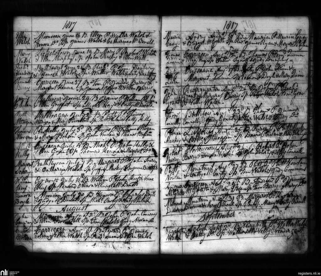 Carrigeen and Mooncoin; County of Kilkenny; Diocese of Ossory. Baptisms, June 1817 to Sep. 1817