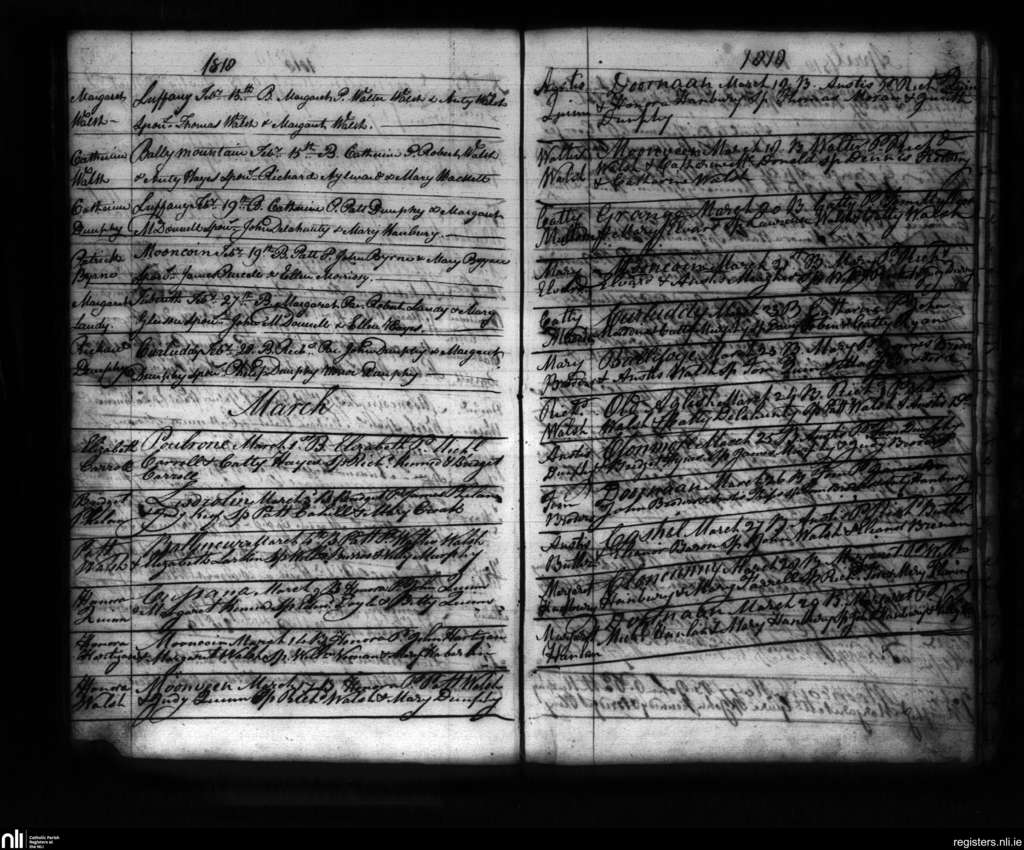 Carrigeen and Mooncoin; County of Kilkenny; Diocese of Ossory. Baptisms, Feb. 1818 to Mar. 1818