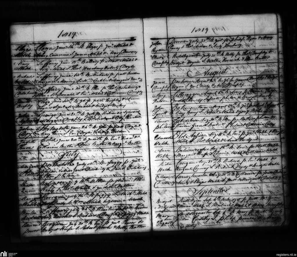 Carrigeen and Mooncoin; County of Kilkenny; Diocese of Ossory. Baptisms, June 1819 to Sep. 1819