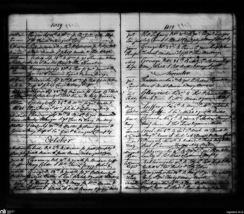 Carrigeen and Mooncoin; County of Kilkenny; Diocese of Ossory. Baptisms, Sep. 1819 to Nov. 1819