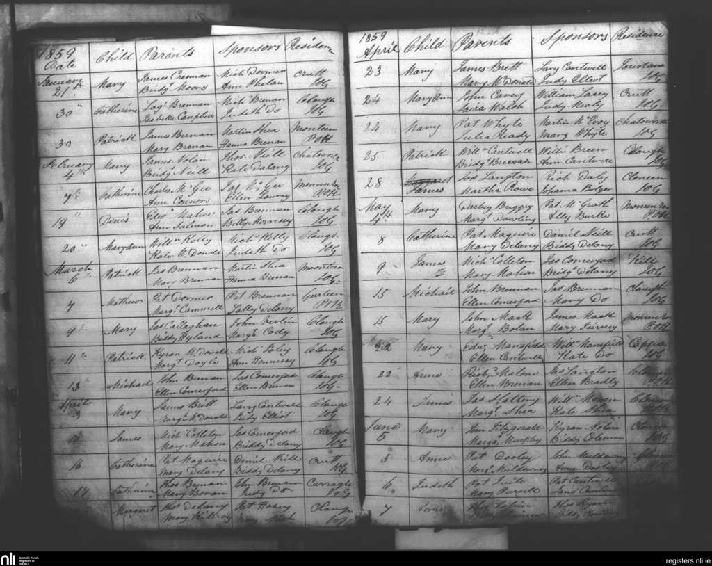 Clough; County of Kilkenny; Diocese of Ossory. Baptisms, Jan. 1859 to June 1859