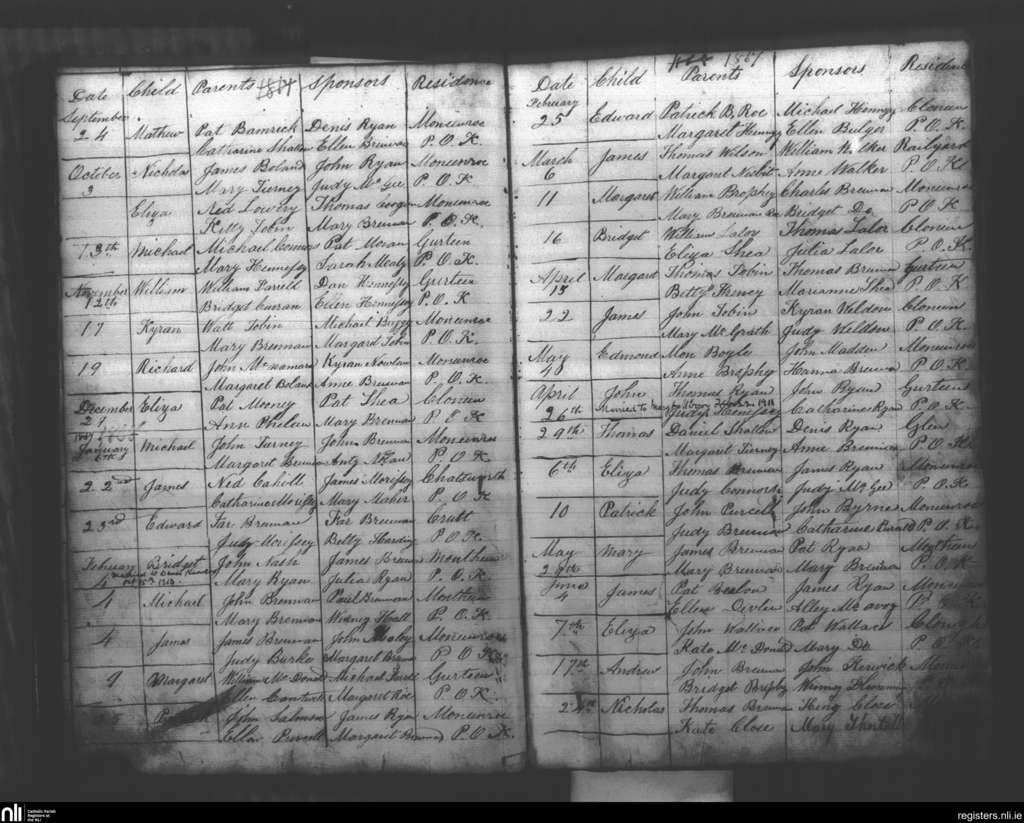 Clough; County of Kilkenny; Diocese of Ossory. Baptisms, Sep. 1866 to June 1867