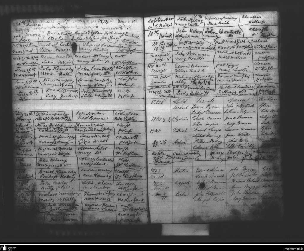 Clough; County of Kilkenny; Diocese of Ossory. Baptisms, June 1873 to Nov. 1873