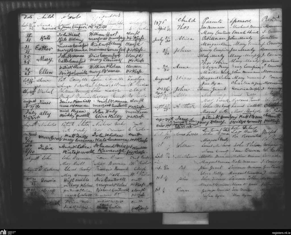 Clough; County of Kilkenny; Diocese of Ossory. Baptisms, Apr. 1876 to Oct. 1876