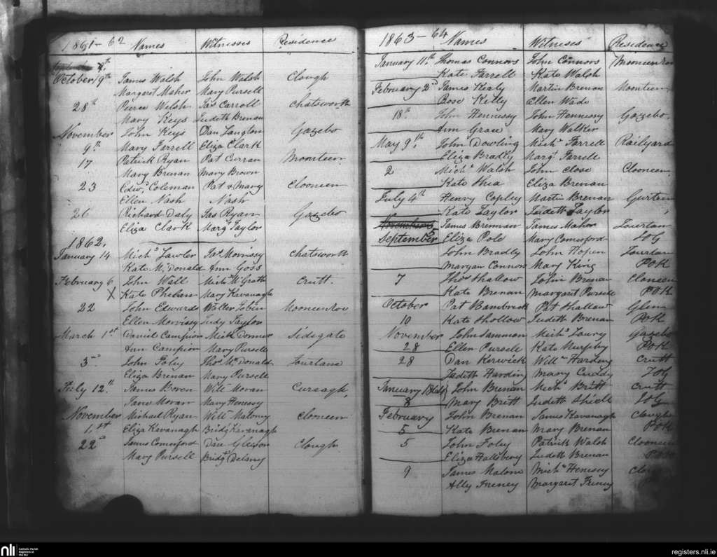 Clough; County of Kilkenny; Diocese of Ossory. Marriages, Oct. 1861 to Feb. 1864