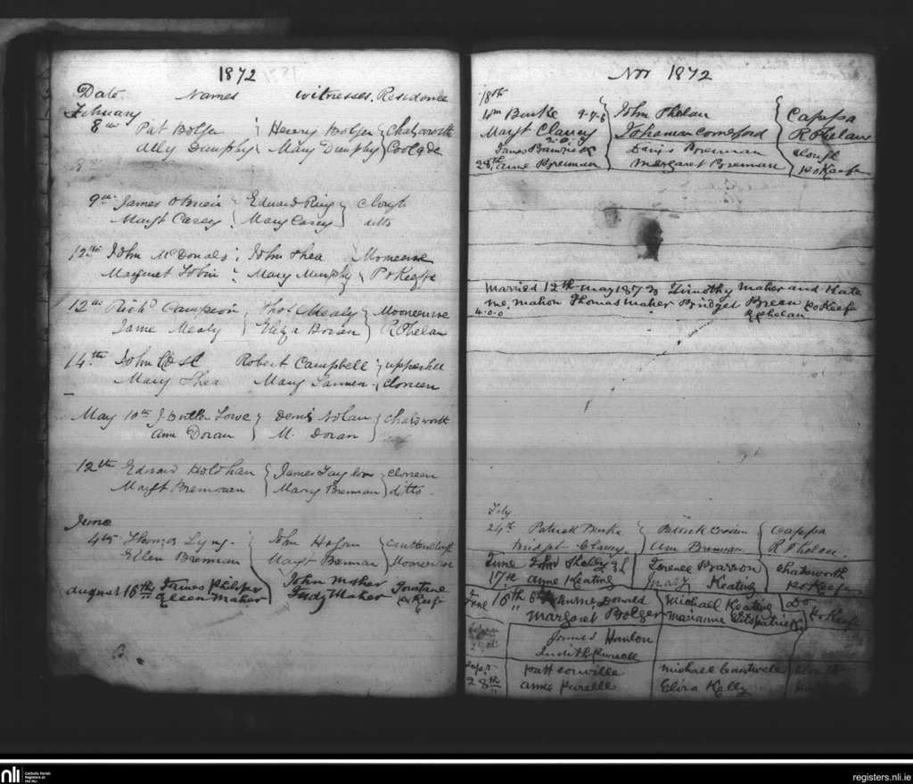 Clough; County of Kilkenny; Diocese of Ossory. Marriages, Feb. 1872 to Nov. 1872
