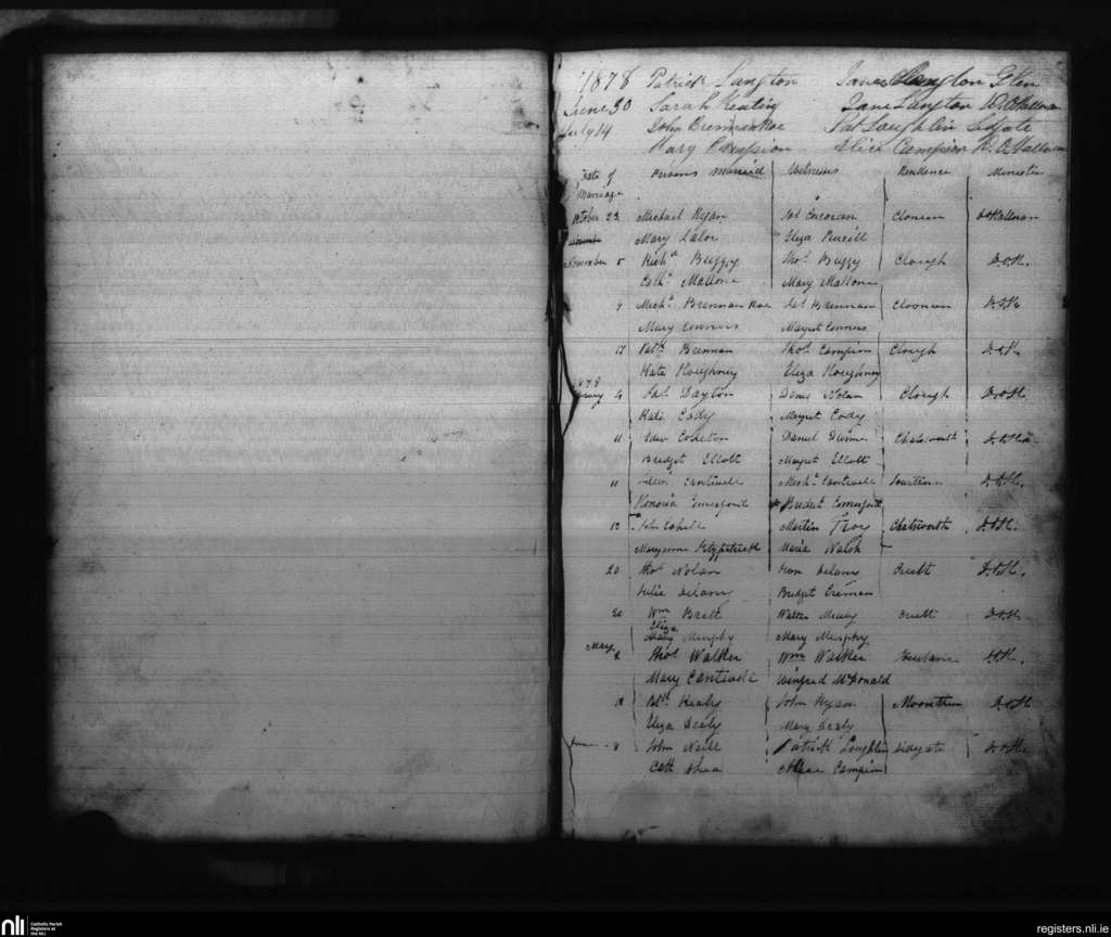 Clough; County of Kilkenny; Diocese of Ossory. Marriages, June 1878 to June 1879