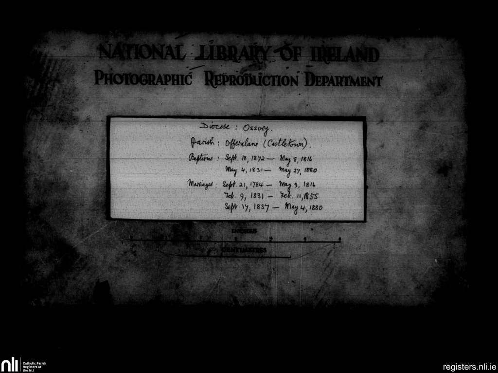 Offerlane; County of Laois; Diocese of Ossory. Baptisms, Marriages