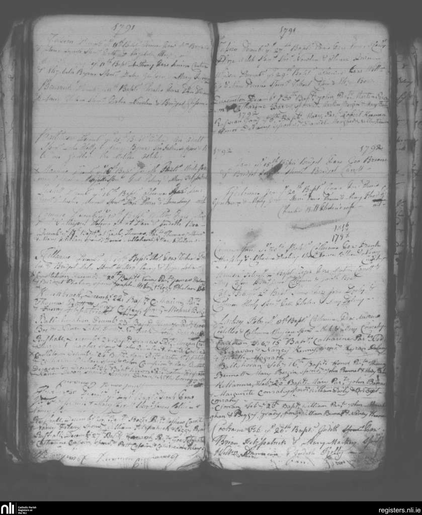 Offerlane; County of Laois; Diocese of Ossory. Baptisms, Dec. 1791 to Feb. 1792