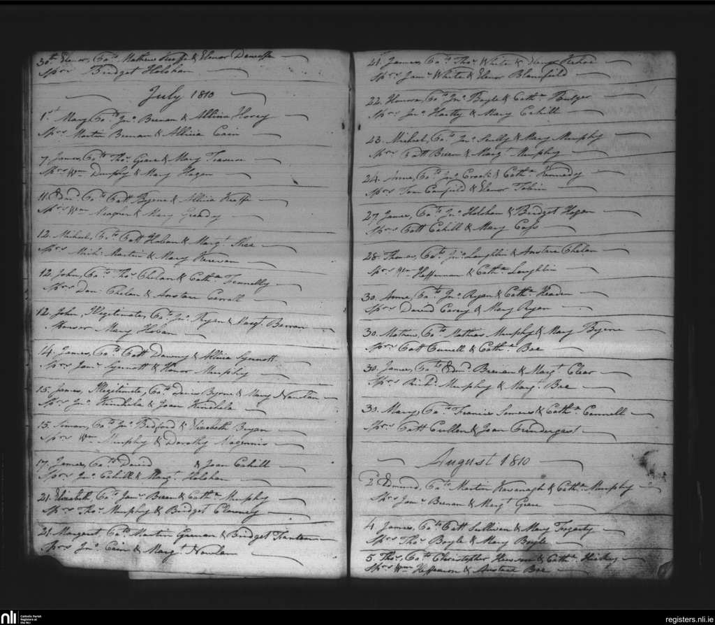 Gowran; County of Kilkenny; Diocese of Ossory. Baptisms, June 1810 to Aug. 1810