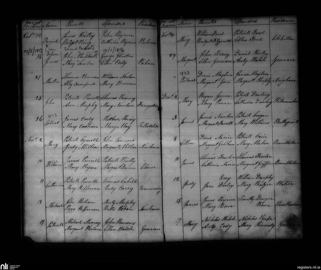 Gowran; County of Kilkenny; Diocese of Ossory. Baptisms, Oct. 1823 to Dec. 1823
