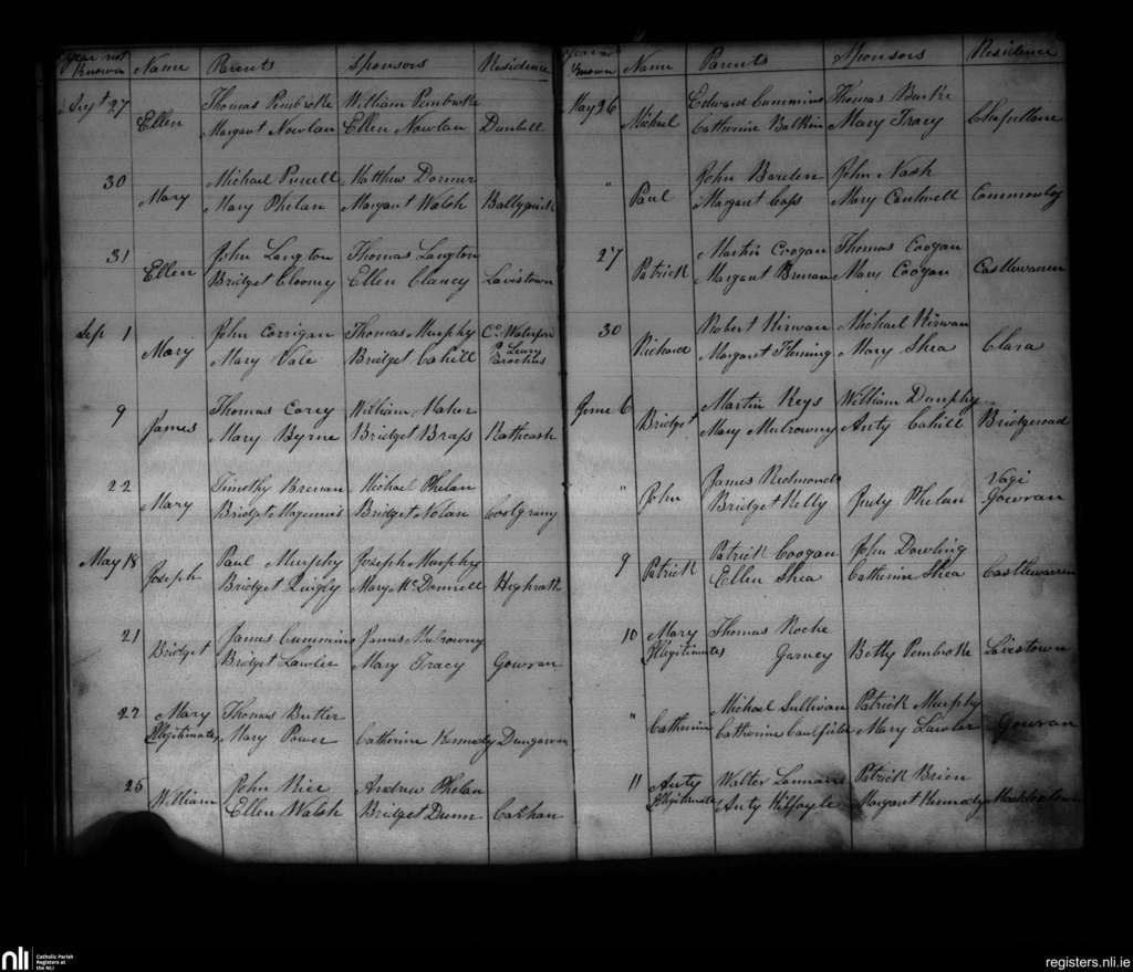 Gowran; County of Kilkenny; Diocese of Ossory. Baptisms, Aug. 1823 to June 1824