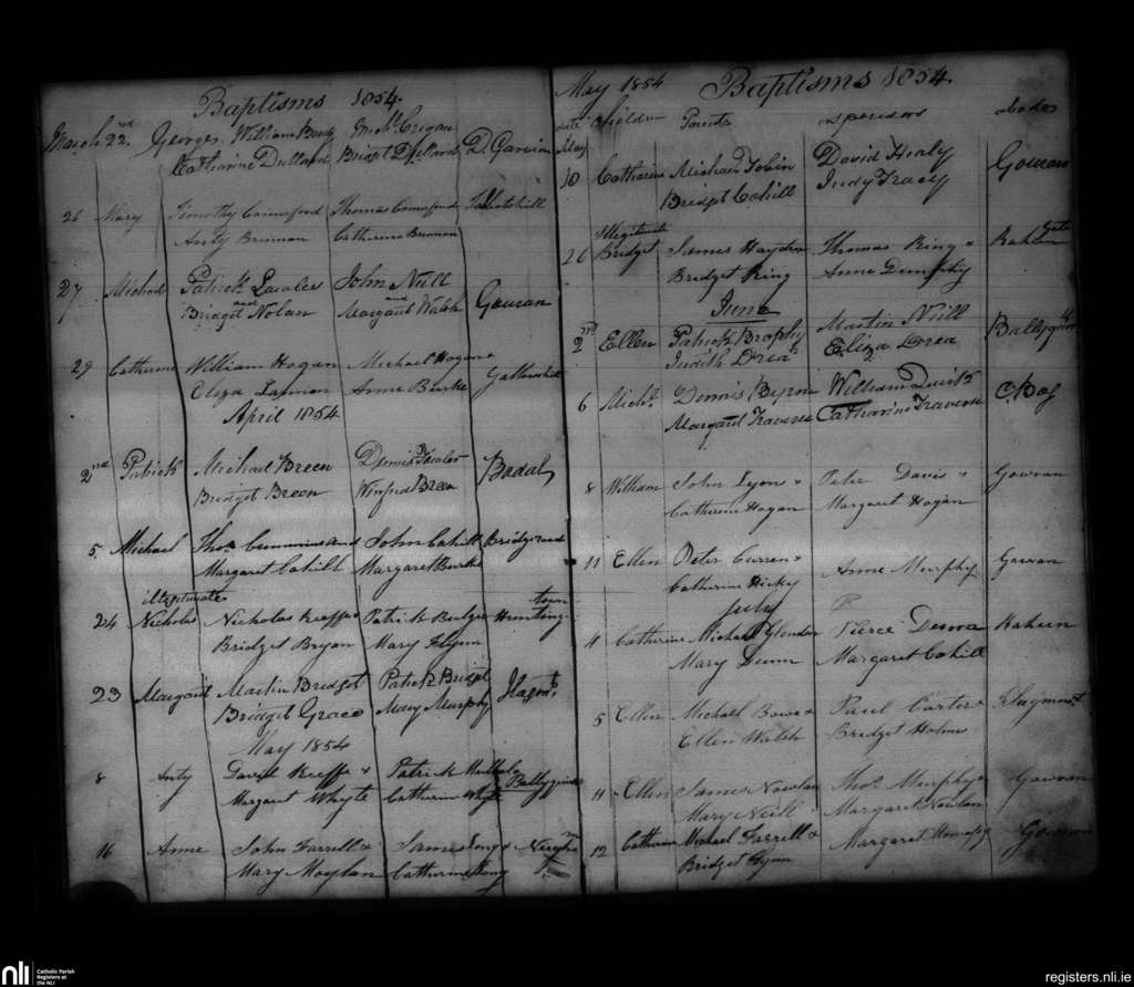Gowran; County of Kilkenny; Diocese of Ossory. Baptisms, Mar. 1854 to July 1854