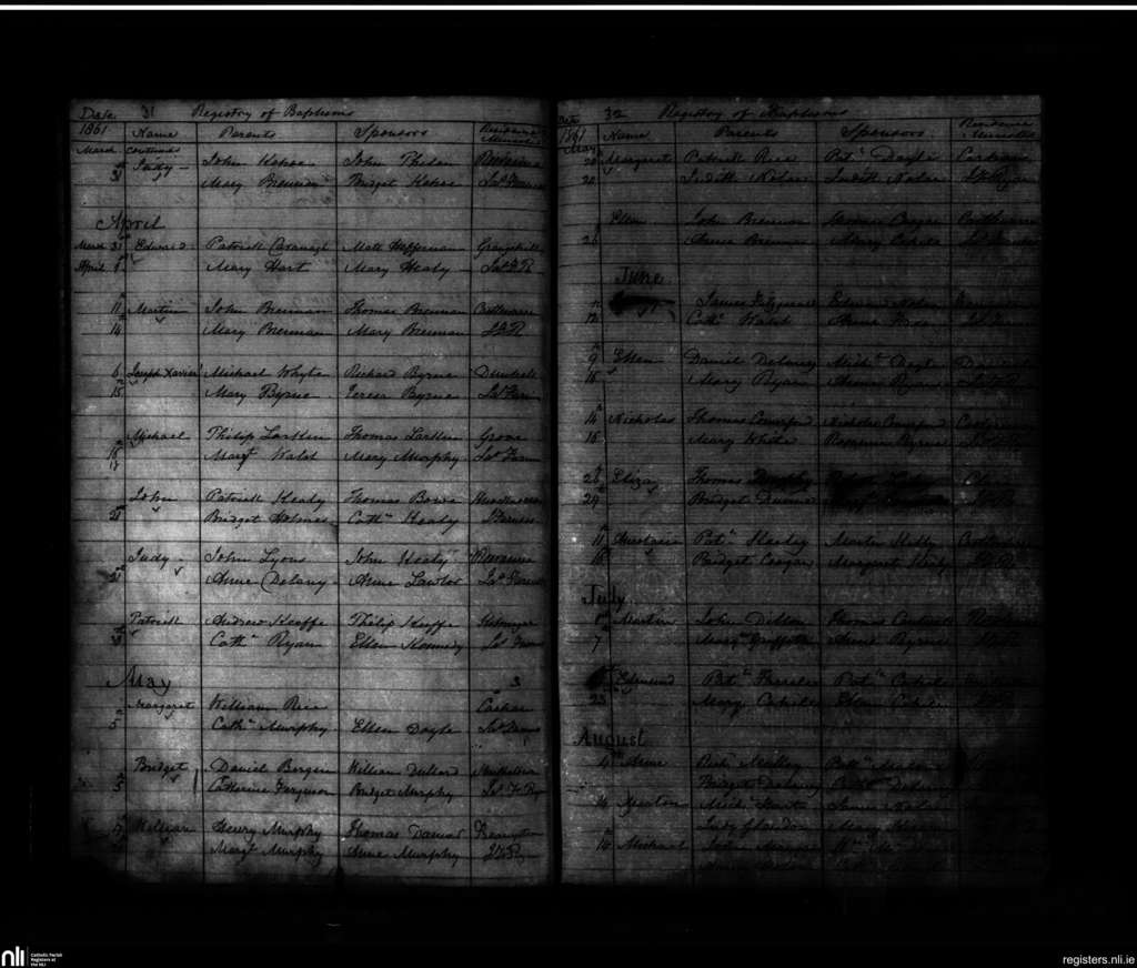 Pitt; County of Kilkenny; Diocese of Ossory. Baptisms, Mar. 1861 to Aug. 1861